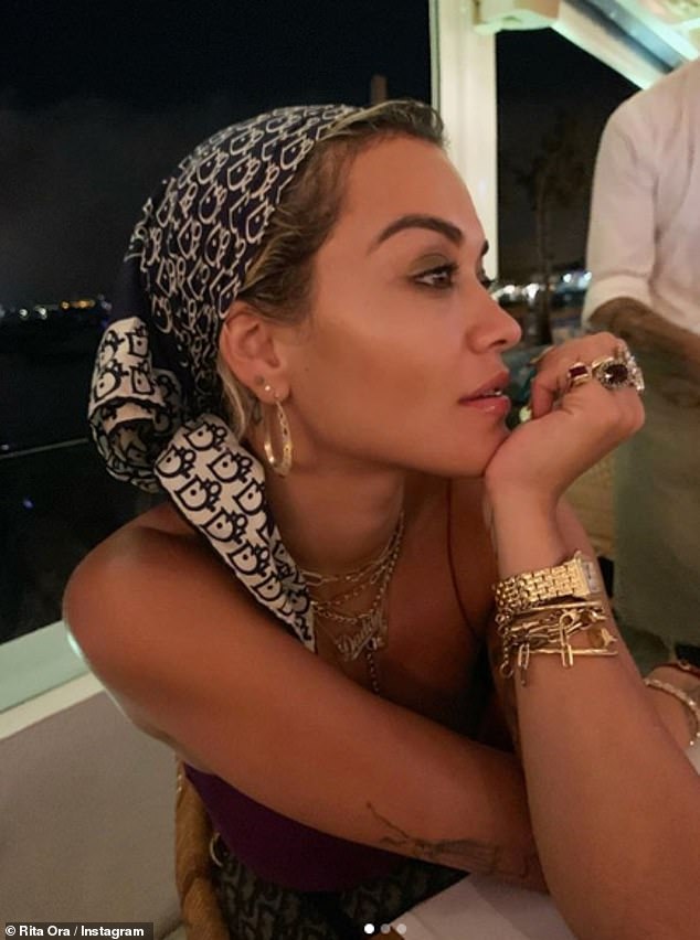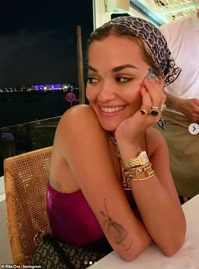 Dhe Rita Ora shijoi një darkë romantike me miqtë në restorantin Sa Punta në Ibiza të enjten në mbrëmje.