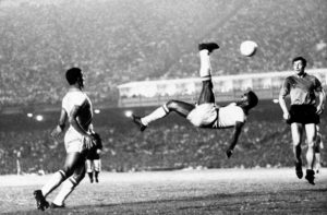 Pioneri i kësaj akrobacie në fushën e lojës ka qenë braziliani Leonidas, në vitin 1932. Duhet thënë që nuk është nevoja të jesh futbollist klasi për ta bërë, thjesht duhet të gjesh momentin e caktuar dhe të kesh pak fat.