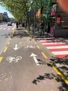Kjo rrugë plotëson dhe një standard tjetër, pasi për herë të parë është pajisur me një korsi të dedikuar me tapet të kuq për biçikletat./a.ç