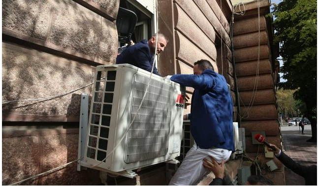 Noka kapërceu sërish kangjellat, dha një deklaratë për mediat e fill më pas ndihmoi deputetin Ervin Salianji të ngjitej nga dritarja, moment që në pamjet e kapura ngjan disi i sikletshëm./m.j