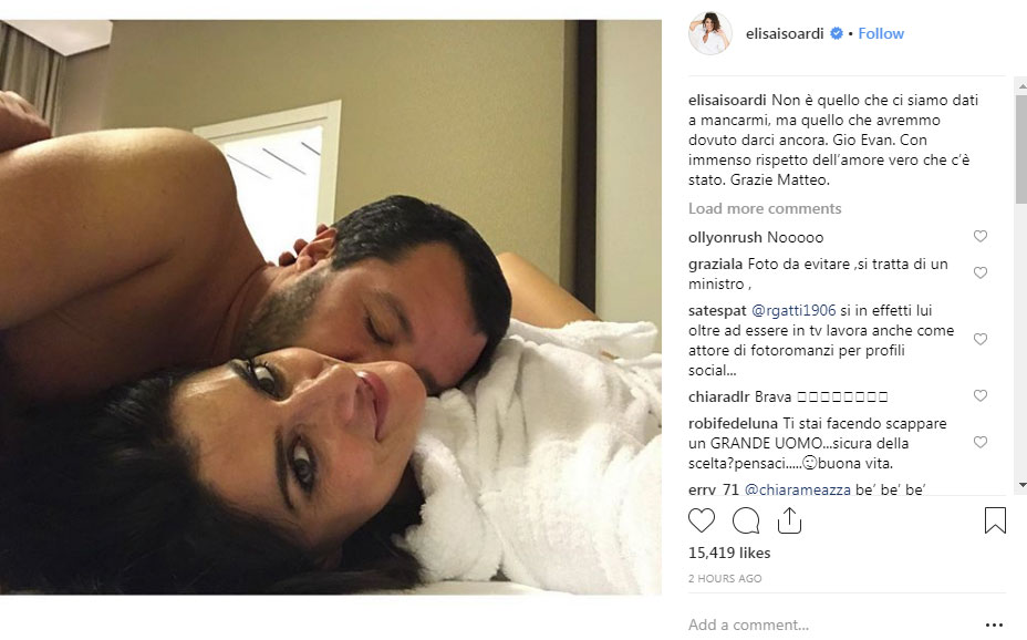 Foto e fundit së bashku të Ministrit të Brendshëm italian, Salvini me partneren e tij Elisa Isoardi janë bërë gjatë verës së këtij viti. Në to ata shfaqeshin mjaft të lumtur në krahët e njëri tjetrit. Por përralla e tyre e bukur ka përfunduar. Lajmin e ka dhënë vetë Elisa me një postim pak orë më parë në Instagram.