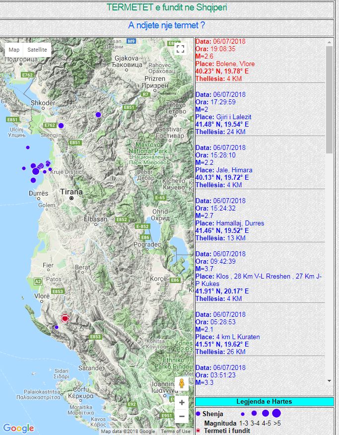 1-Në orën 00:26 me magnitudë 2.4, thellësi 3 km dhe me epiqendër Mazhe e Madhe.