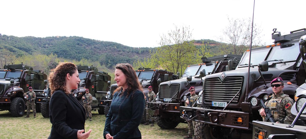 “Kjo paketë përkthehet në më shumë cilësi kapacitetesh, më shumë angazhime të përbashkëta dhe sigurisht në më shumë siguri si për vendin tonë ashtu edhe për aleancën. Armatimi i ri sipas standardit të NATO, paketa e re e automjeteve te blinduara HMMWV dhe MRAP që po ju shtohen inventarit të pajisjeve të FA-ve, po e ndryshojnë cilësisht realitetin e përditshëm të punëve të ushtarakëve tanë si dhe po rrisin dita –ditës performancën e tyre, gjatë ushtrimit të detyrave në teatrot e operacioneve ku marrin pjesë. Mjetet do të mundësojnë zgjerimin e spektrit të detyrave dhe misionit të trupave tanë dhe do të rrisin sigurinë e personelit sidomos ndaj minave dhe mjeteve shpërthyese të improvizuara, i cili konsiderohet tashmë si një prej kërcënimeve më të pranishme në mjedisin operativ”- u shpreh ministrja Xhaçka.