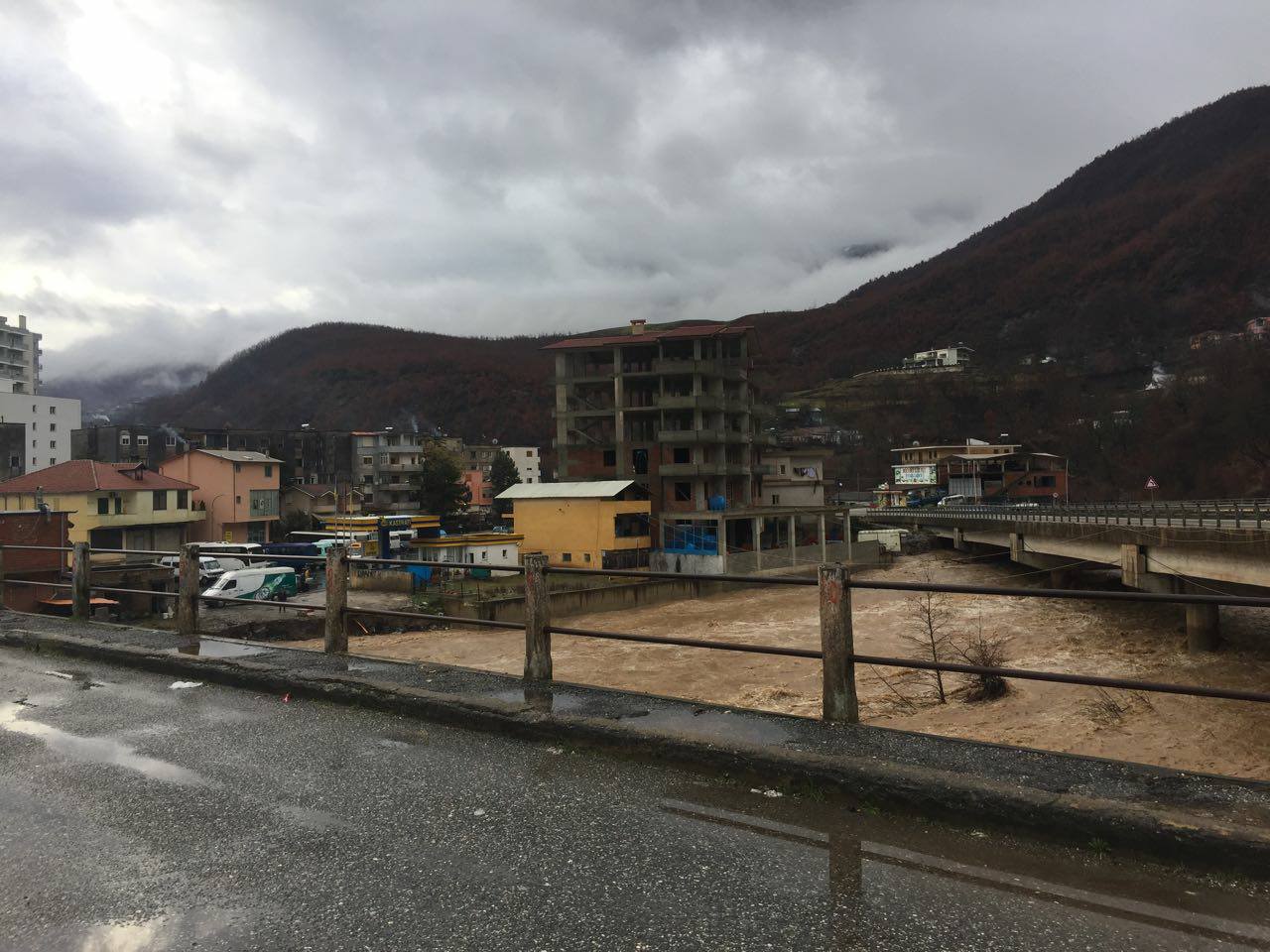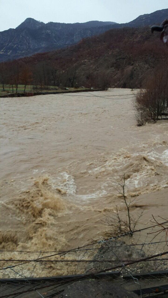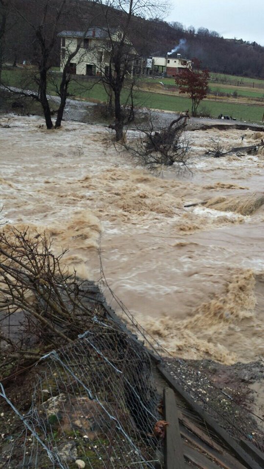 Lumi Shkumbin ka dalë nga shtati në disa zonë, si pasojë e prurjeve të shumta si rezultat e reshjeve të dendura të shiut. Për pasojë janë përmbytur disa zona bujqësore. Vërshimi i lumit Shkumbinit ka shkatërruar një urë në njësinë administrative Hotolisht, urën e Rrethit të Bardh. Për pasojë kanë mbetur të izoluar qindra banorë.