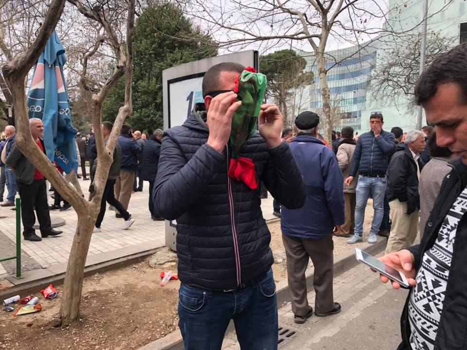 Disa prej protestuesve të opozitës, kanë marra masa artizanale për t’u mbrojtur nga gazi lotësjellës. Ata kanë prerë disa bidona dhe i kanë bërë si kundragaz.