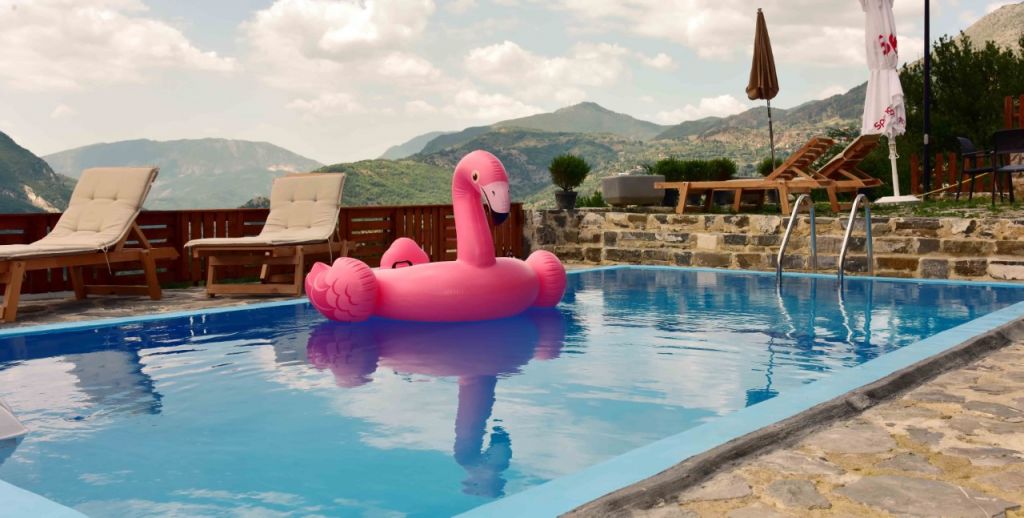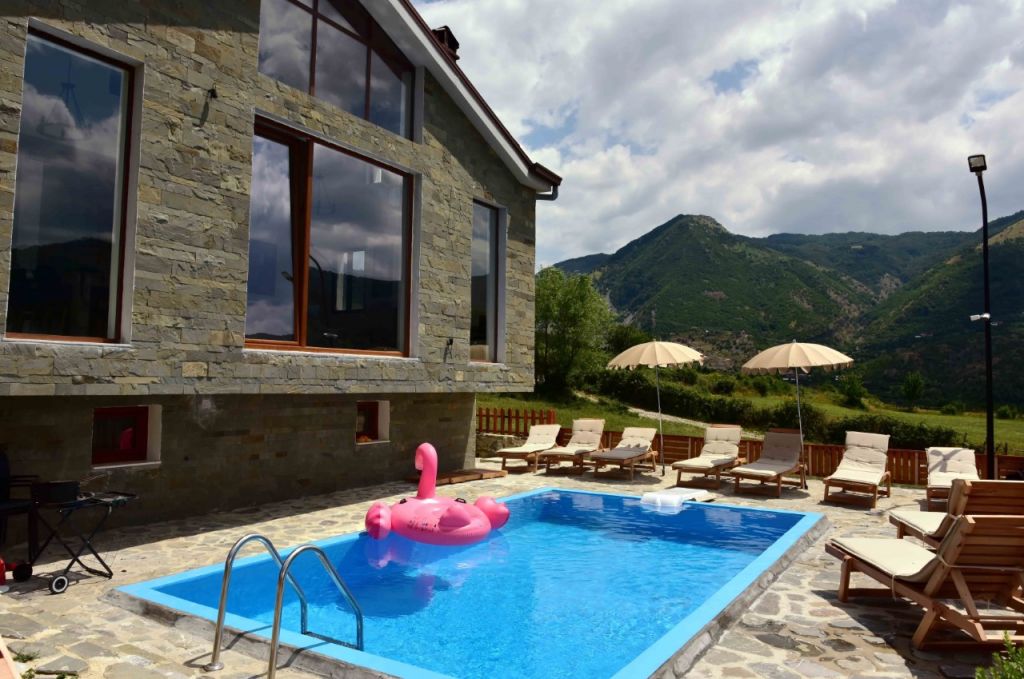 E gjithë vila është ndërtuara me gurë dhe dru. Në sallën e pritjes ka një oxhak modern dhe nga dritaret shquan një peisazh të mrekullueshëm të zonëse. Poshtë ka një qilar ku mbahet vera në kushte të freskëta, si dhe një tavolinë të gjatë ku mund të konsumosh verë në freski natyrale, por është dhe ambient shumë miqësor e intim. Nuk mungon edhe një pishinë, e cila e bën shumë më argëtuese pushimin në këtë bujtinë. Bujtina “Tomadhe” është bërë mjaft e njohur tashmë jo vetëm për vizitorët nga Tirana që vinë gjatë fundjavës, por edhe për shumë të huaj nga vende të ndryshme të botës.