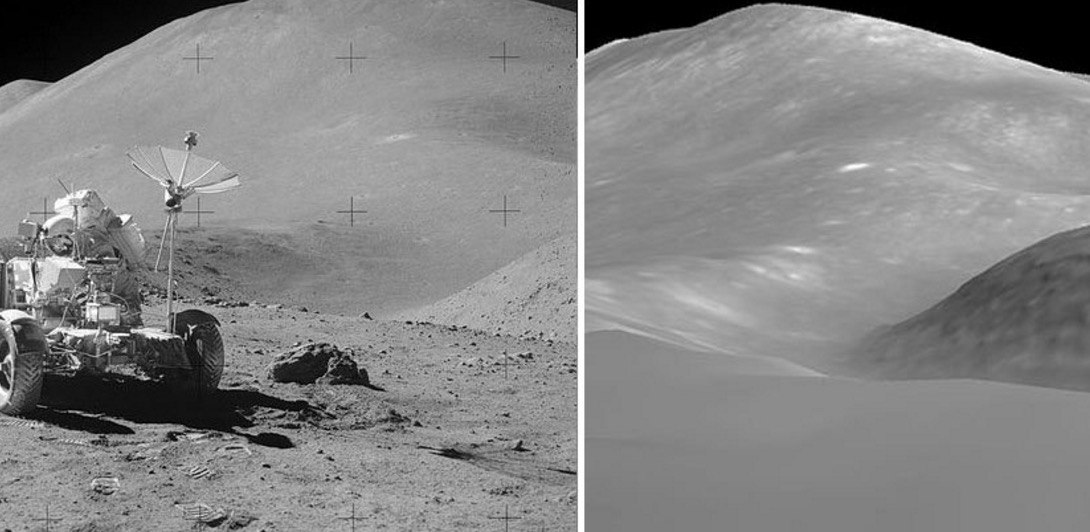 Ekuipazhi i anijes Apollo 15 përbëhej nga atronautët David Skot, Alfred Uorden dhe Xhejms Irvin. Ata u nisën nga Toka në korrik 1971 dhe zbritën në Hënë në zonën e quajtur Hadley Rille afër Maleve Apenine, në veriperëndim të vendin ku ishte ulur Apolli 11. Astronautët e Apollo 15 u kthyen pa problem në Tokë. Shkencëtarët u befasuan nga gurët që ata sollën me vete. Njërin prej tyre shkencëtarët e quajtën Guri i Gjenezës, sepse besohet të ketë një moshë prej 4 miliardë vjetësh. Sipas shkencëtarëve, ky gur ishte krijuar kur Hëna kishte qënë në moshën e saj më të herëshme.