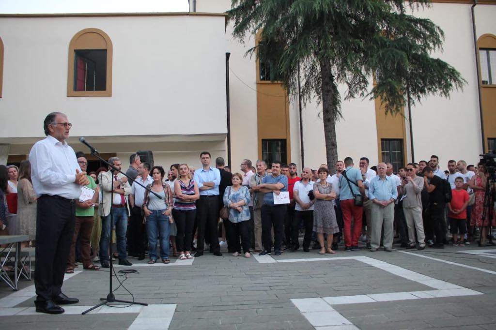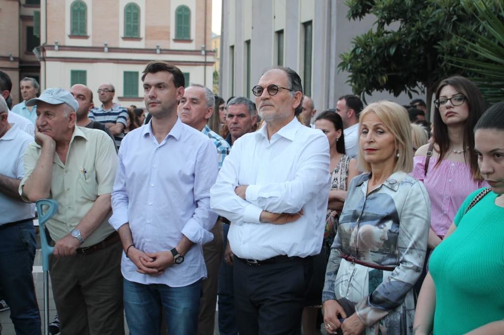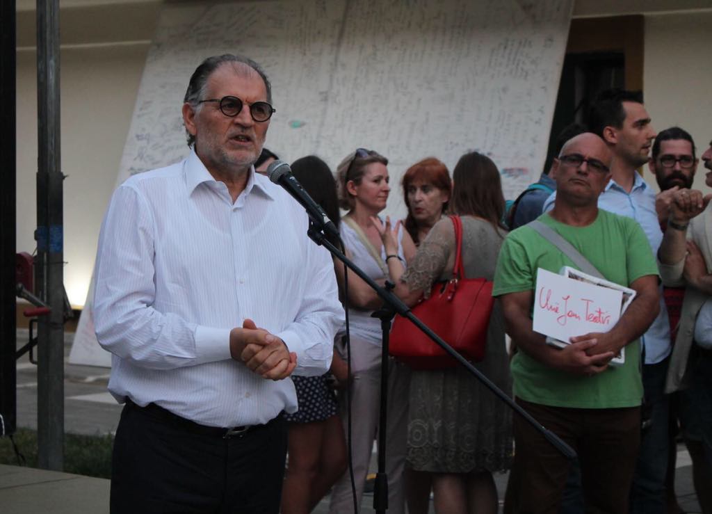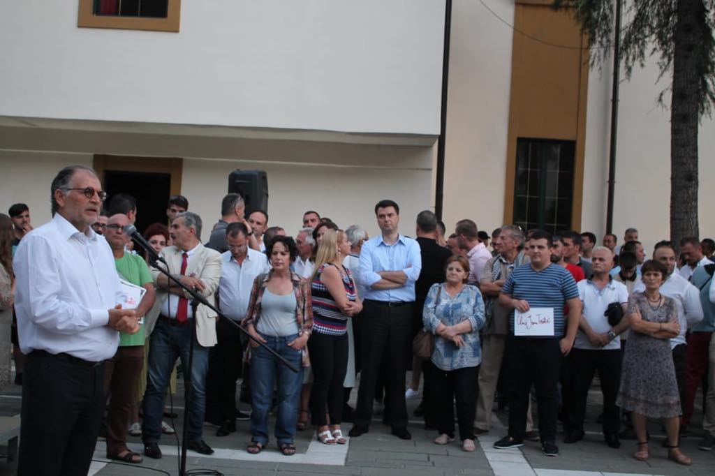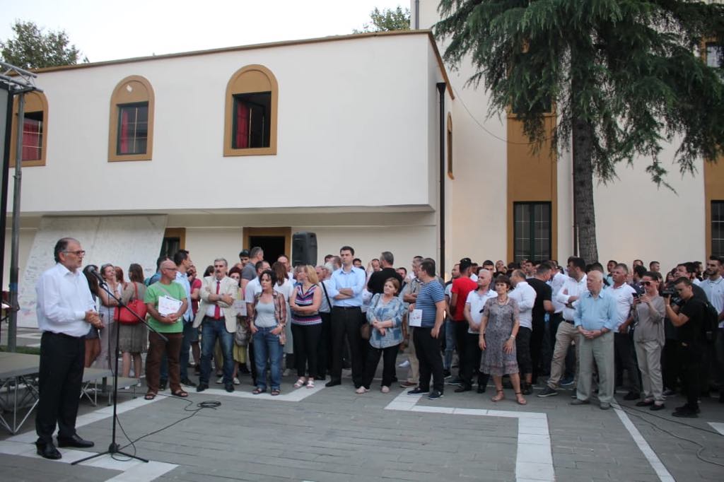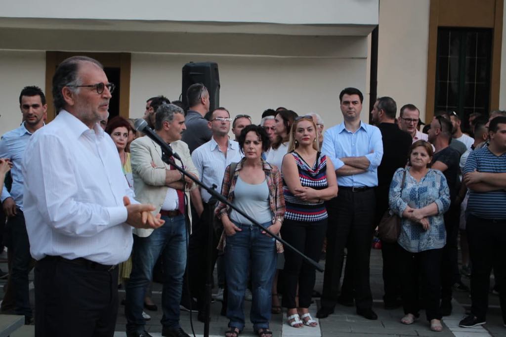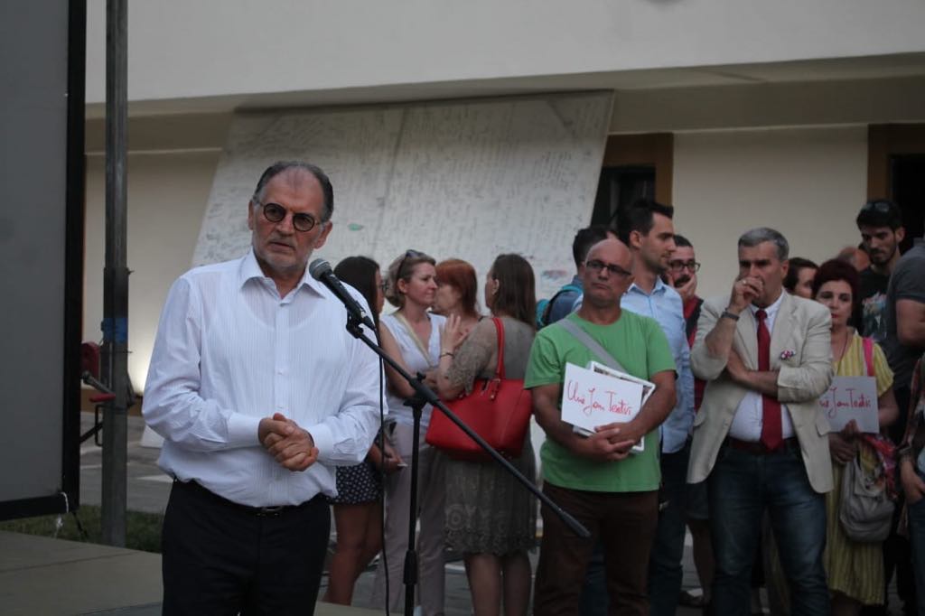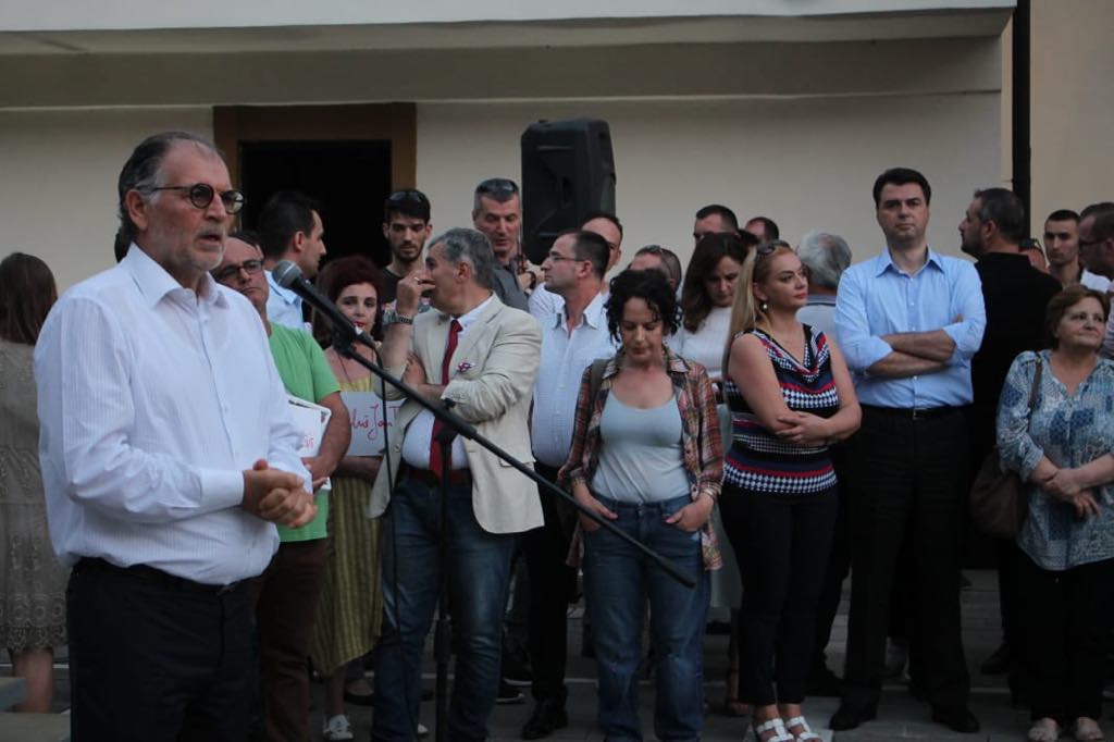 Kauza e Teatrit Kombëtar ka bërë bashkë Lulzim Bashën me Koço Kokëdhimën. Ata kanë mbajtur të dy nga një fjalim, për mbrojtjen e godinës aktuale. Ne proteste thuajse mungonin artistet. /ma.me