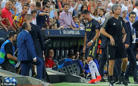 Cristiano Ronaldo rrezikon ta paguajë shtrenjtë kartonin e kuq të marrë në ndeshjen e Ligës së Kampioneve mes Valencias dhe Juventusit në “Mestalla”.
