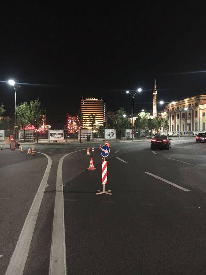 E ndërsa nata mbuloi qytetin, punonjësit e Bashkisë së Tiranës ishin në punë për të riparuar sinjalistikën në Bulevardin Dëshmorët e Kombit për të rritur sigurinë për qytetarët.
