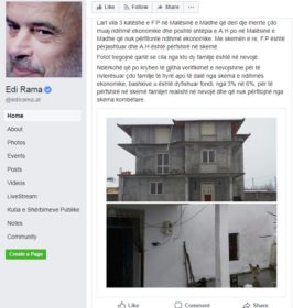 Kryeministri Edi Rama ka vijuar edhe mbrëmjen e sotme me denoncimin e rasteve abuzime me skemën e ndihmës ekonomike. Përmes një postimi në rrjetin social “Facebook”, kreu i Qeverisë sjell rastin e një familje në Malësinë e Madhe, e cila ndonëse banonte në një vilë trekatëshe, trajtohej me ndihmë ekonomike.