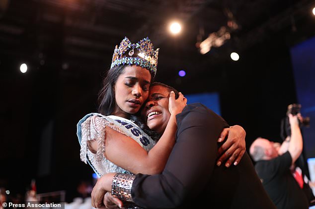 Fitueses Toni-Ann Singh iu dorëzua kurora nga Miss-i i vitit të kaluar, meksikania Vanessa Ponce de Leon.