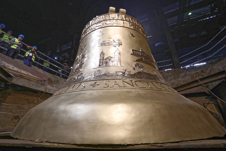 Prodhuar nga bakri dhe kallaji, do të aktivizohet nga katër motorë dhe sapo të instalohet do të jetë pjesë e një kullë 100 metra të lartë. Përgatitjet dhe testet e këmbanës zgjatën pothuajse katër vjet. Sfida tani është transporti i këmbanës gjigande në Brazil me anije, një udhëtim që pritet të marrë një vit. /ma.me