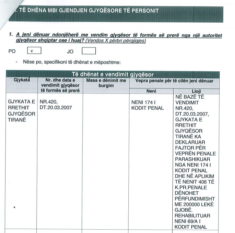 Çdo kush e kupton se po të kisha deklaruar një gjobë administrative, nuk rrezikoja asgjë, pasi dënimi nuk hyn në kategorinë e veprave që përbëjnë kushte për të mos u zgjedhur.