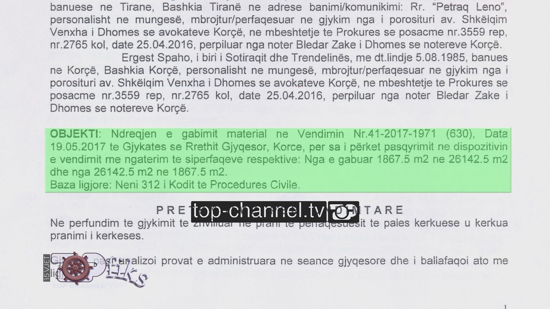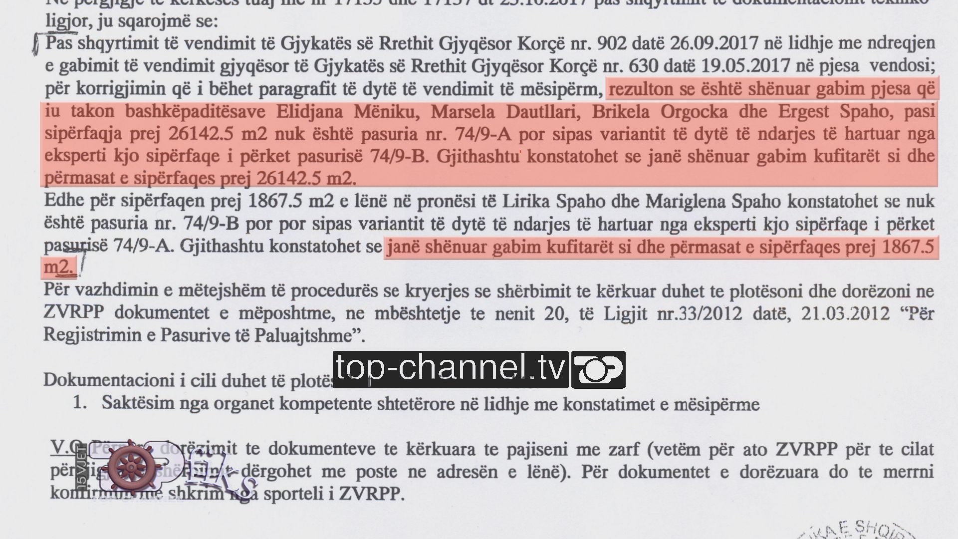 “Bëra kërkesë në Gjykatën e Korçës me objekt pjesëtimin e pasurive të paluajtshme. Kërkesa u shqyrtua nga gjyqtari Markelian Kuqo. Në maj të vitit 2017, gjyqtari pranoi kërkesën tonë, por bëri gabim në ndarje. Ne kërkuam rreth 26 dynymë, sa na takonte, ndërsa gjyqtari na dha vetëm 1.8 dynymë. Pjesën tonë ia kaloi njerkës. Më pas bëra kërkesë për ndreqje gabimi. Gjyqtari Kuqo e pranoi kërkesën dhe na dha në vendim 26 dynymët, por sërish vendimi kishte gabime. Koordinatat binin te pjesa prej 1.8 dynymë dhe ne nuk e regjistronim dot pronën në Hipotekë”, vijon ajo.