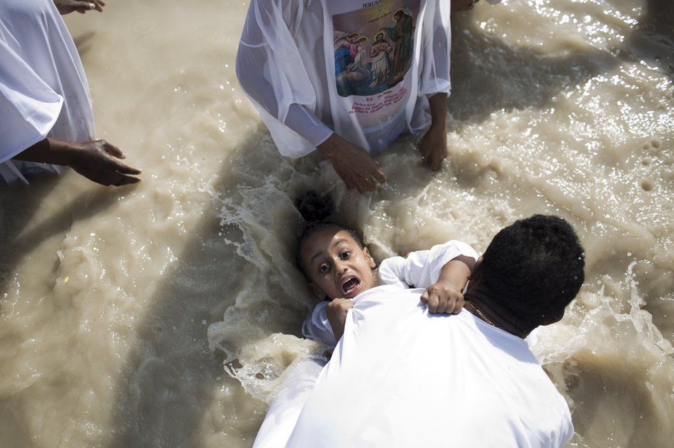 1.Një peligrine ortodokse nga Eitrea, duke u pagëzuar në Ditën e Ujit të Bekuar në lumin Jordan në Bregun Perëndimor në Palestinë.