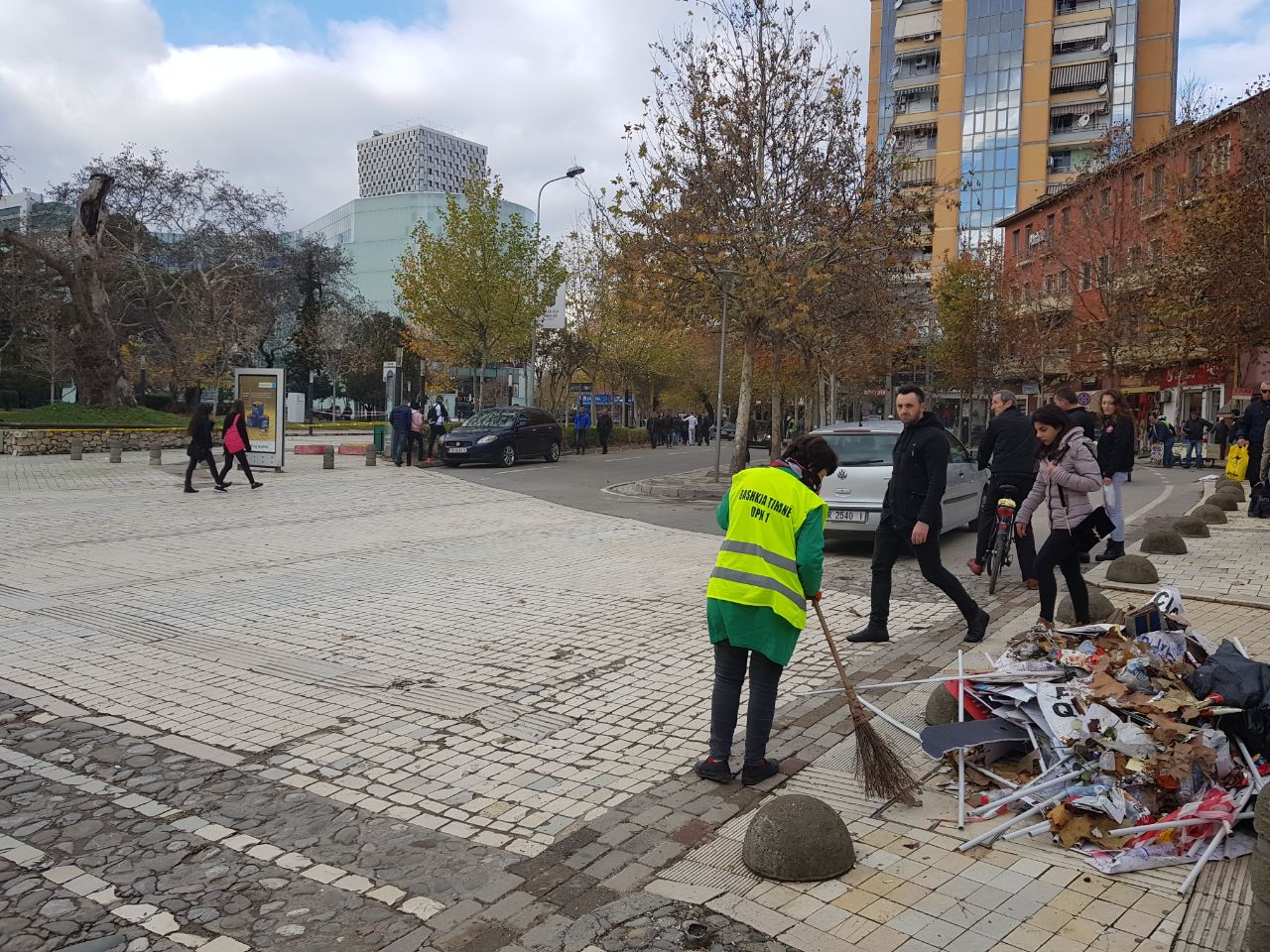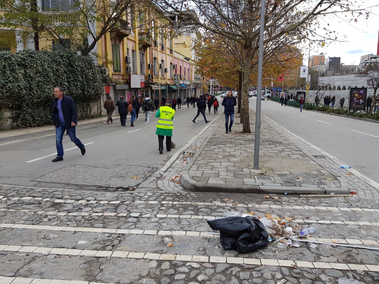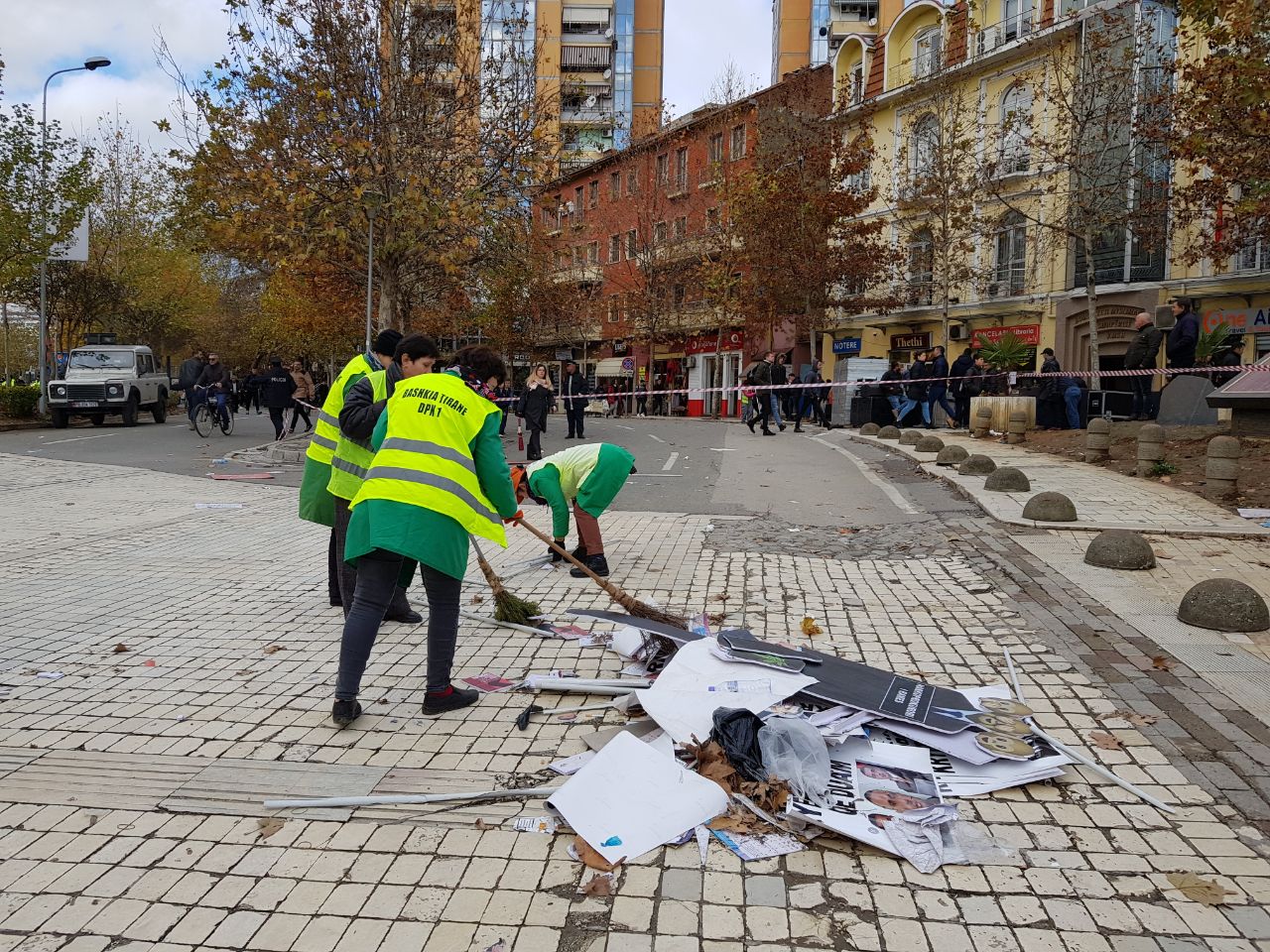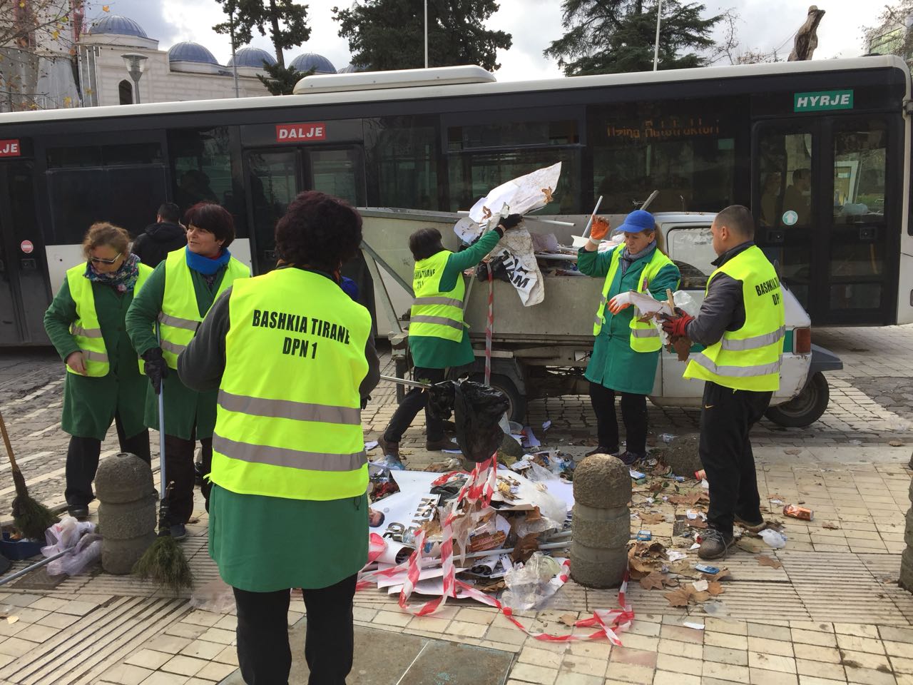 Menjëherë pas përfundimit të protestës, punonjësit e ndërmarrjeve të Bashkisë së Tiranës nisën punën për pastrimin e rrugëve dhe të lulishteve aty pranë duke hequr papastërtitë e hedhura në tokë nga ana e tubuesve.