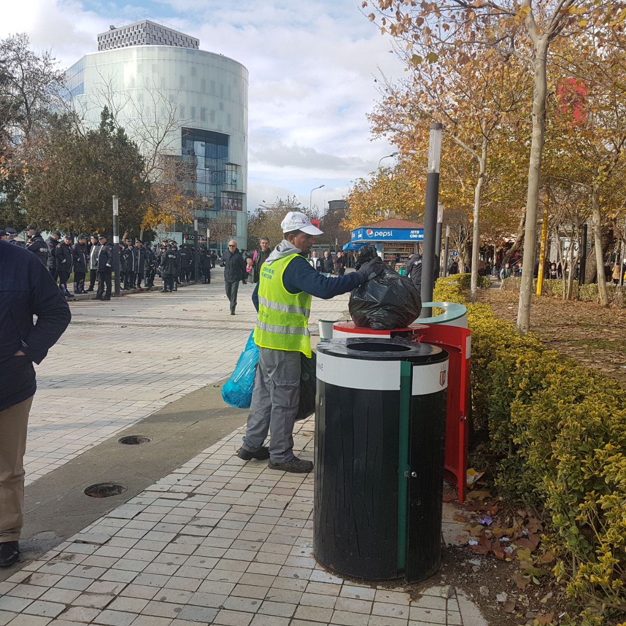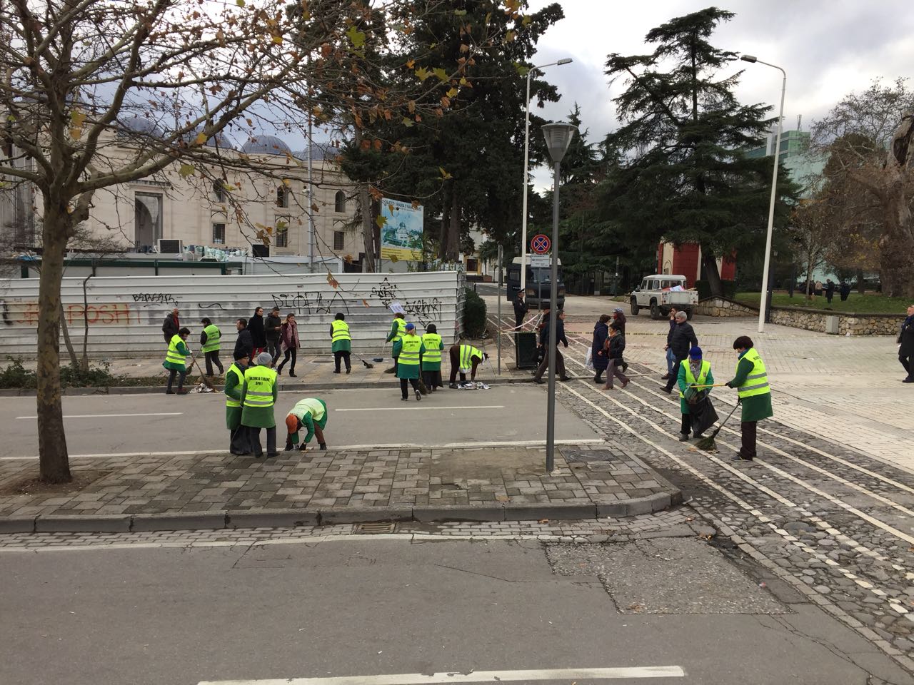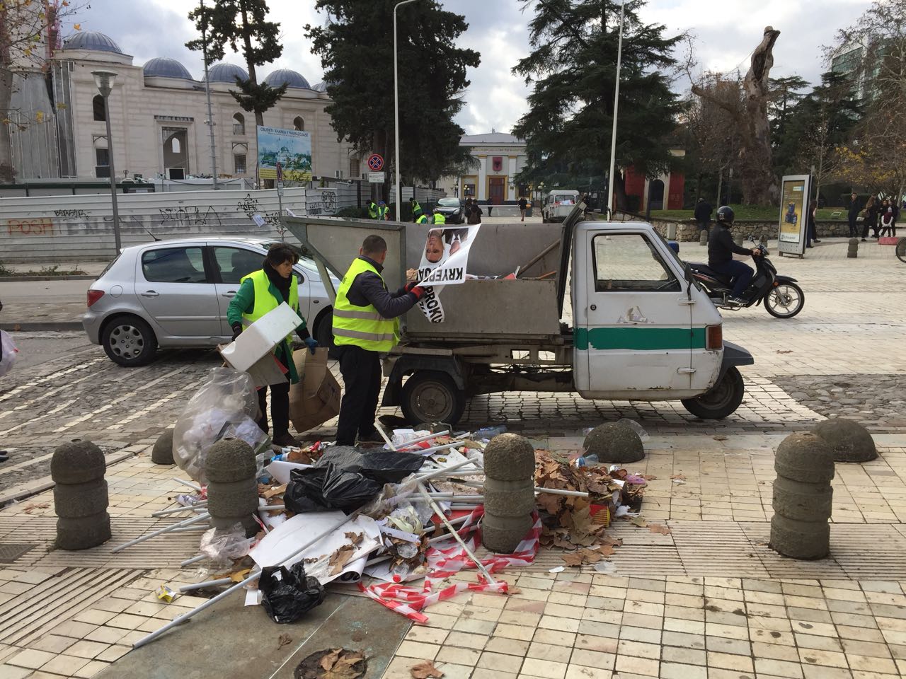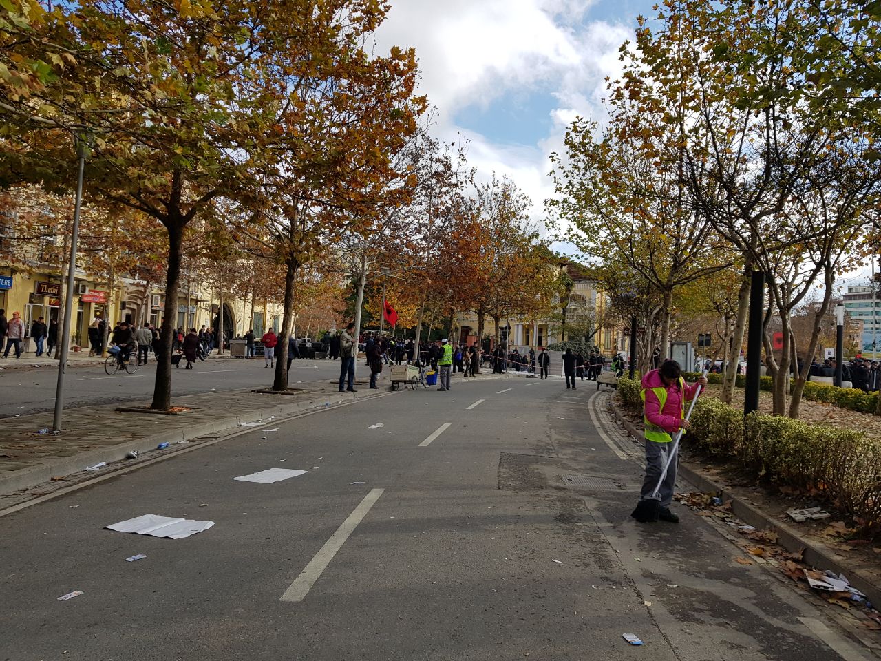 Menjëherë pas përfundimit të protestës, punonjësit e ndërmarrjeve të Bashkisë së Tiranës nisën punën për pastrimin e rrugëve dhe të lulishteve aty pranë duke hequr papastërtitë e hedhura në tokë nga ana e tubuesve.