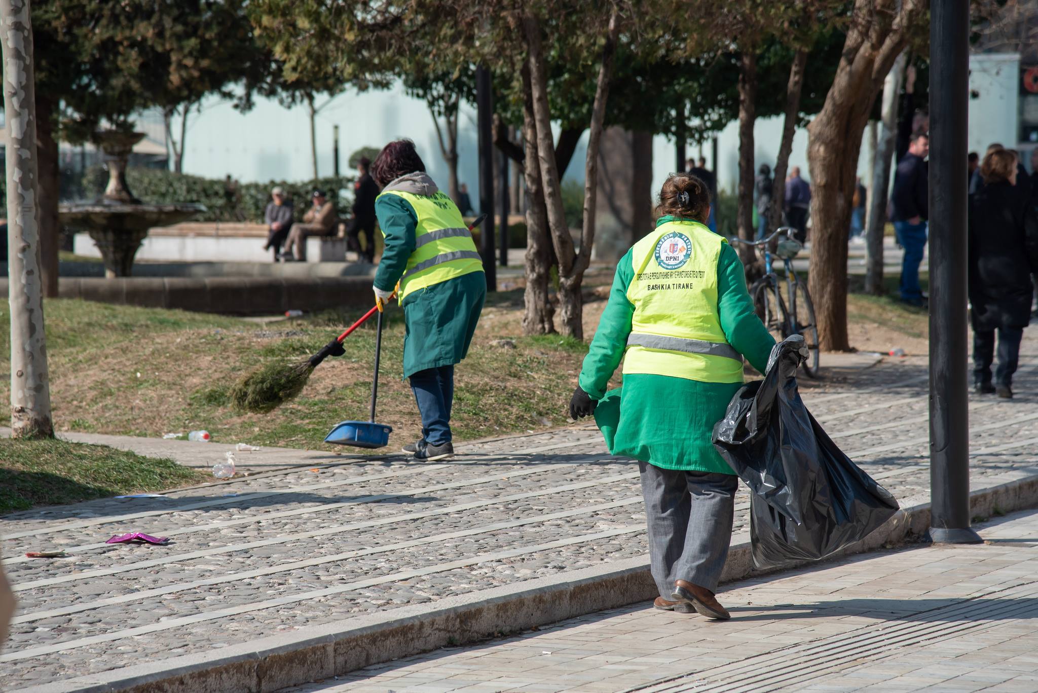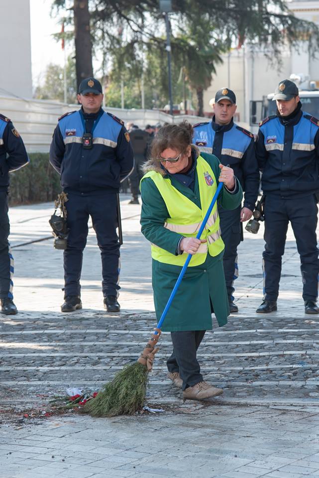 Menjëherë me largimin e protestuesve nisën nga puna punonjëset e Bashkisë së Tiranës për pastrimin dhe rikthimin e normalitetit për qytetarët. /a.rada