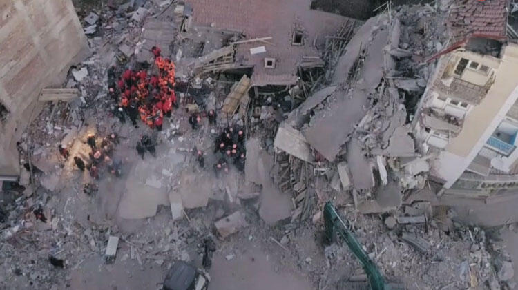 Ndërtesa të shkatërruara, dhe të kthyera në gërmadha, ndërsa forcat e kërkim-shpëtimit janë duke kërkuar për shpëtimin e personave të bllokuar apo dhe për nxjerrjen e trupave.