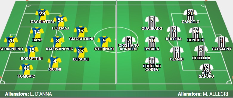 Gjithsesi, sa i përket ndeshjes, Allegri i ka dhënë fund dilemave dhe ka zgjedhur skemën 4-2-3-1 për të rreshtuar Juventusin e tij, tashmë që ka në përbërje Cristiano Ronaldon.