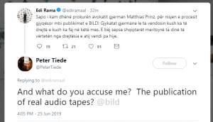“Dhe pse po më akuzoni mua? Për publikimin e audiopërgjimeve të vërteta?”,- shkruan Tiede.