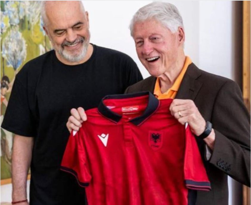 “Gëzuar ditëlindjen President”, shkruan Rama në gjuhën angleze, ndërsa ndan fotografinë e mëposhtme ku Clinton shfaqet duke mbajtur në duar një fanellë të Kombëtares Shqiptare të futbollit.