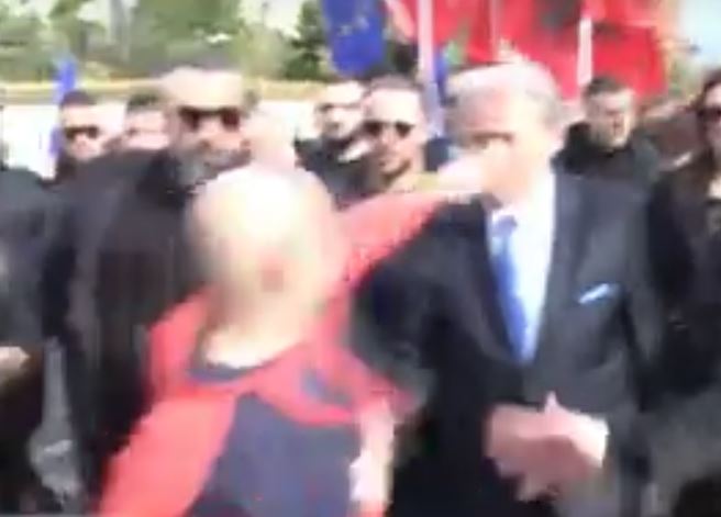 Ngjarja ka ndodhur në momentin që Berisha po ecte me kreun e Partisë së Lirisë Ilir Meta në bulevardin “Dëshmorët e Kombt”.