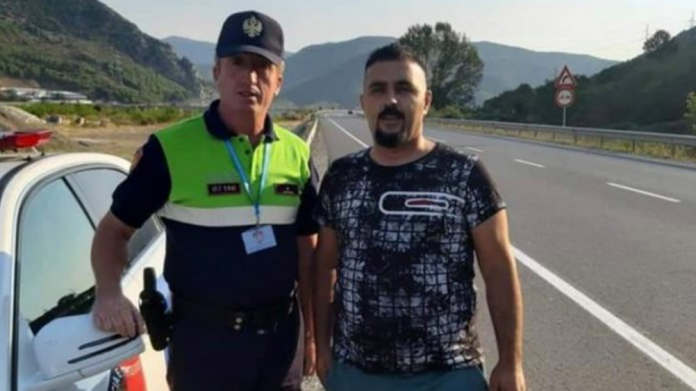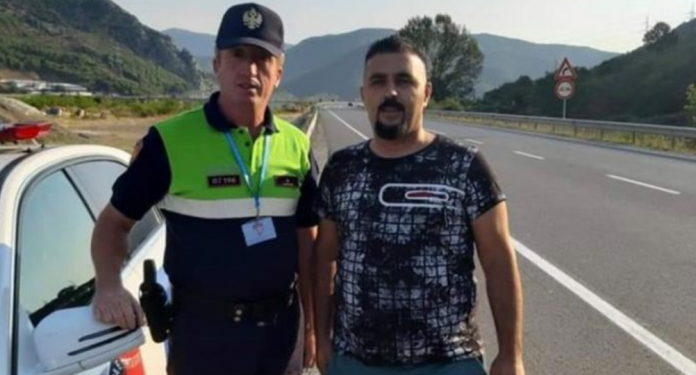 Punonjësi i qarkullimit rrugor në “Rrugën e Kombit”, komisari Gjin Bushgjokaj ka bërë një gjest për t’u përshëndetur.