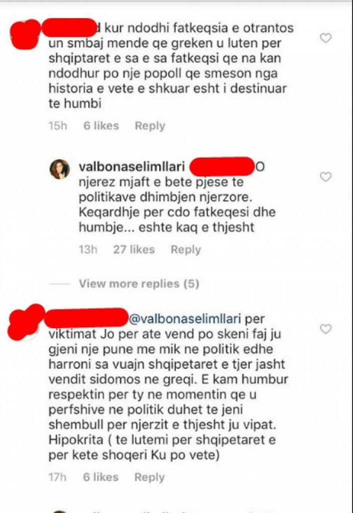 Valbona Selimllari ka reaguar ashpër ndaj zërave kritik që janë ngazëllyer për tragjedinë në Greqi ku deri më tani numërohen 86 viktima dhe qindra të plagosur.