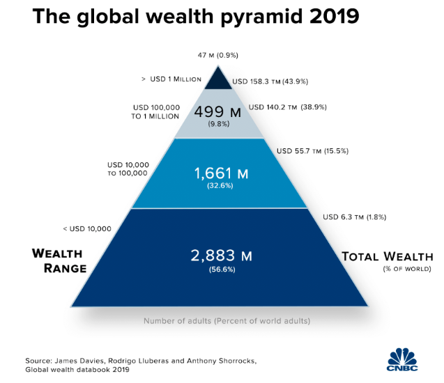 Një studim i fundit publikuar nga CNBC ka dalë në përfundimin se numri i milionerëve në botë u rrit në rreth 46.8 milionë gjatë vitit të kaluar dhe ata tani zotërojnë gati gjysmën e pasurisë së botës.