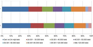 Të dhënat e reja të Institutit të Statistikave tregojnë se afro 1.2 milionë shqiptarë konsiderohen “të zënë me punë” nga të cilët, rreth 666 mijë vetë janë të punësuar me pagë. Më shumë se gjysma e të punësuarve me pagë marrin më pak se 40 mijë lekë bruto ndërsa më pak se 10% kanë pagë më të lartë se 95 mijë lekë.