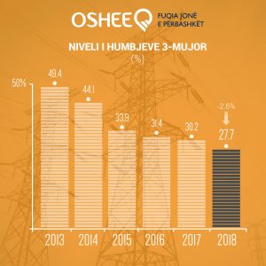 Duke i krahasuar humbjet me 3-mujorin e parë 2017, kemi një reduktim me 2.5 pikë përqindje, ndërsa krahasuar me planin OSHEE, muaji Mars u mbyll në masën 0.6% më pak se norma e planifikuar (Plan 27.9%).