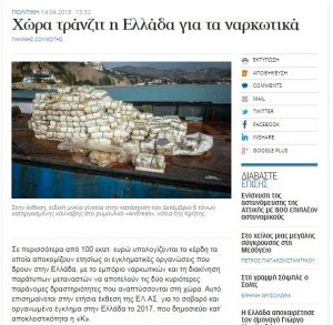 Në raport shkruhet se shqiptarët drejtojnë trafikun e kanabisit, që më pas shkëmbehet me heroinë në Turqi. Në lidhje me trafikimin e drogës, sipas raportit ka një rritje të konsiderueshme të sasisë së kanabisit që është kapur nga Shqipëria gjatë vitit 2017.