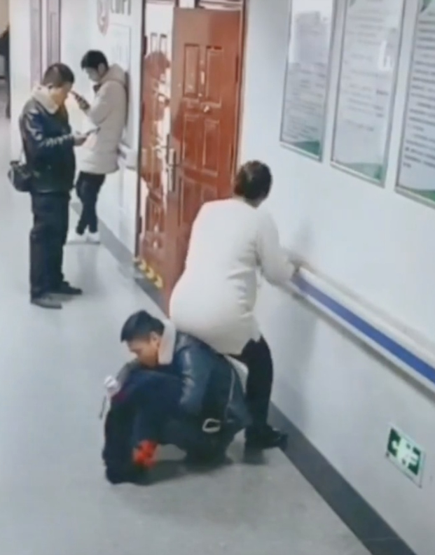 Këto pamje janë kapur në Kinë, ku burri pasi pa që gruaja e tij ishte shumë e lodhur për të pritur në këmbë në korridoret e spitalit, u ul duke improvizuar karrigen për të.