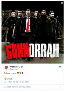 Një foto e Emery dhe disa nga djemtë e tij nuk ishte fjala ‘Gomorra’ por “Gunnorrah” që është botuar në profilin zyrtar të skuadrës londineze. Në cicërimë ishte edhe fraza italiane “Tutto a posto”.