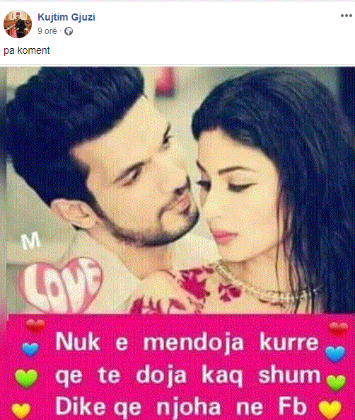 “Nuk e mendoja kurrë që do të doja kaq shumë dikë që njoha në rrjet”, shkruhet në foton e publikuar nga vetë deputeti. E siç duket Gjuzi nuk ka pasur ç’të shtojë dhe krahas fotos ka vendosur thjesht fjalët: Pa koment!