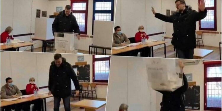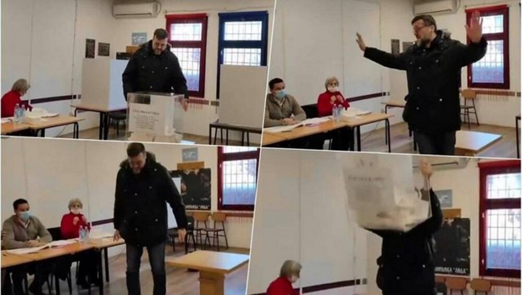 Sipas një video që po qarkullon në rrjetet sociale shihet se si një qytetar, pasi ka votuar, e ka thyer kutinë e votimit. Ngjarja ka ndodhur krejt papritur dhe ka shkaktuar panik tek komisionerët e pranishëm.