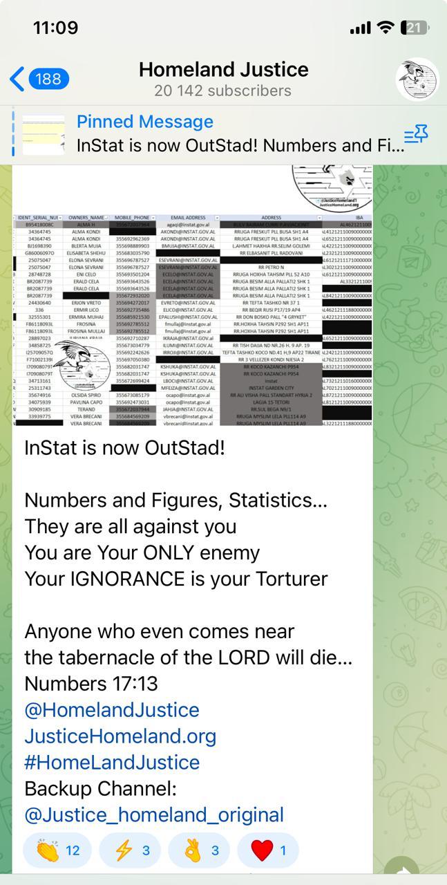 Grupi i hakerave iraniane ‘Homeland Justice’ kanë sulmuar faqen e Insitutit Shqiptar të Statistikave (INSTAT).