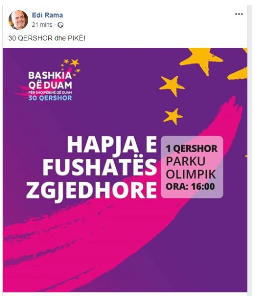 “30 QERSHOR dhe PIKË!”, ka shkruar Rama.