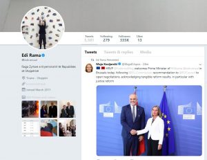 “Mogherini mirëpret Kryeministrin e Shqipërisë Edi Rama në Bruksel sot, duke ndjekur rekomandimet e Komisionit Evropian dhe Këshillin Evropian për hapjen e negociatave, duke pranuar rezultate të prekshme të reformave, në veçanti me reformën në drejtësi.”/l.m