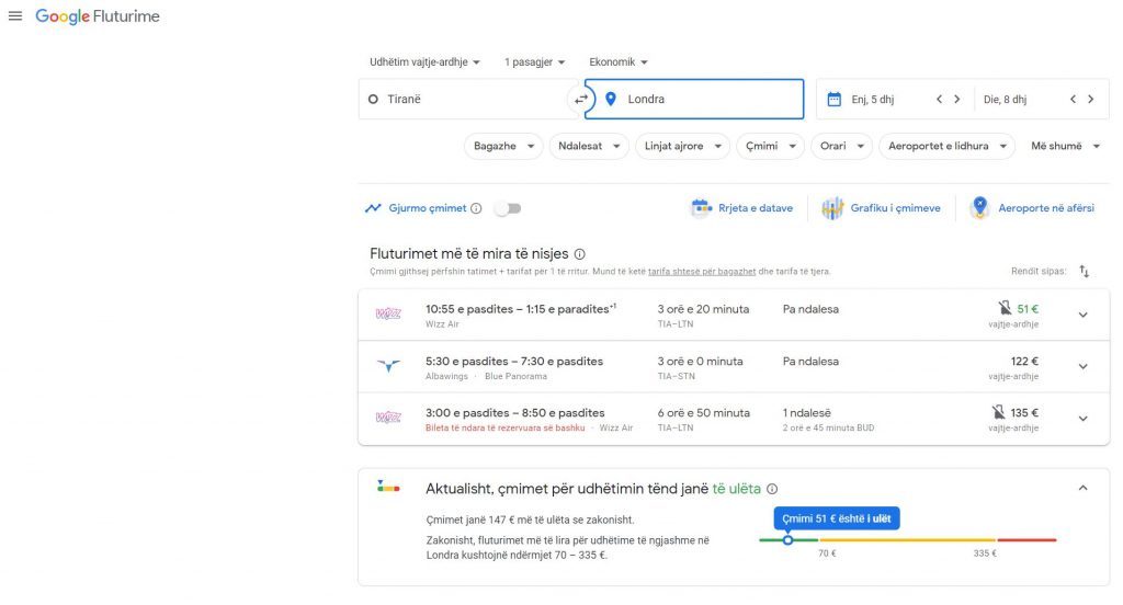Hapja e tregut për “Air Albania”, rritja e kapaciteteve për “WizzAir” dhe hyrja në treg e kompanisë “EasyJet”, ka ndikuar ndjeshëm në portofolin e udhëtarëve, ku shumica e fluturimeve dikur të “kripura”, kanë ulur çmimin e biletave deri në 51 euro vajtje-ardhje Londra, 45 euro vajtje-ardhje Viena, 83 euro-vajtje ardhje Milano, 115 euro vajtje-ardhje Roma, 133 euro vajtje-ardhje Bolonja, etj.
