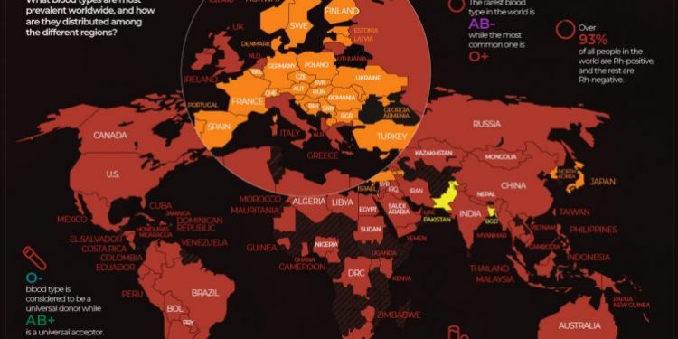 A e dini se cili është grupi i gjakut që mbizotëron te shtetasit shqiptarë? “Visual Capitalist”, një faqe globale e publikimeve online ka realizuar hartën e grupeve të gjakut më të përhapura në secilin vend.
