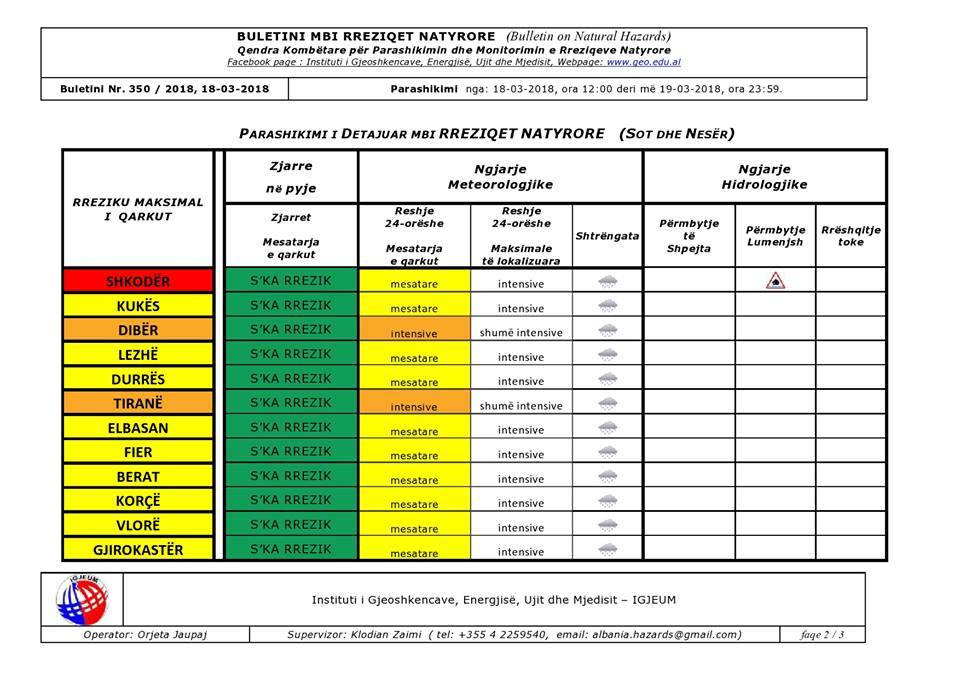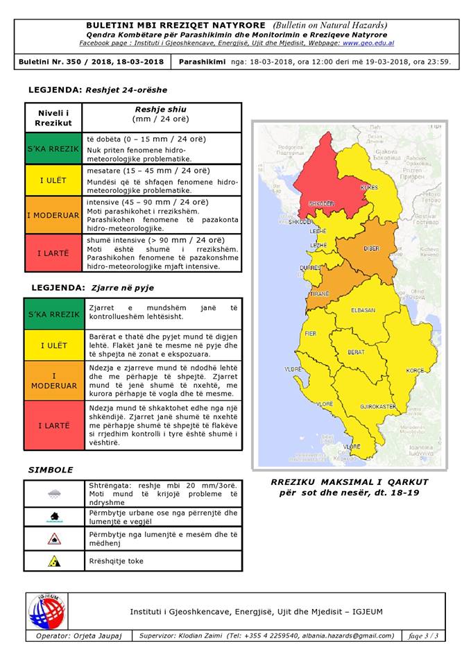 Pritet ZGJERIM I HARTËS SË PËRMBYTJEVE në pjesën e Nën Shkodrës dhe përmbytjes të zonave periferike të qytetit të Shkodrës në afërsi të Liqenit. Për arsye të shtimit të rrezikut nga përmbytja, është vendosur të mbahet shenja e paralajmërimit nga përmbytja për qarkun e Shkodrës. Ngjyra e kuqe e qarkut është vendosur për shkak të rrezikut nga përmbytjet. Në pjesën tjetër të territorit përgjatë ditëve në vazhdim parashikohet