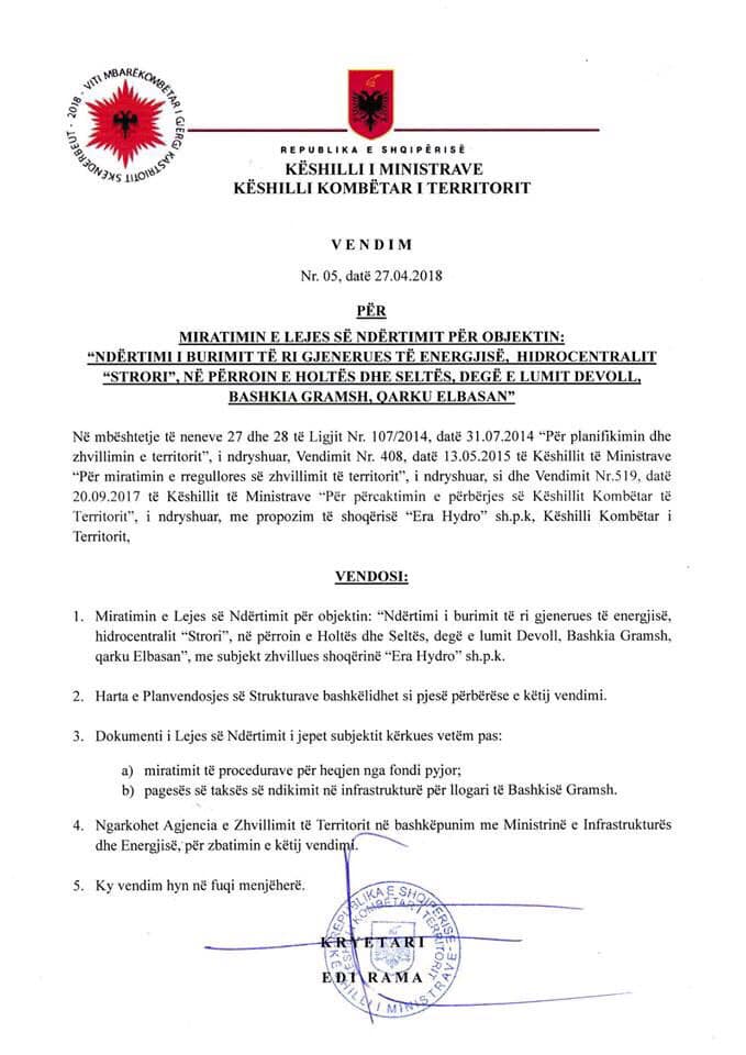 Kujtojmë se banorët dhe PD kanë denoncuar ndërtimin e HEC-it në kanionin e Holtës. Pak ditë më parë Luciano Boci akuzoi ish-ministrin Gjiknuri se me firmën e hedhur për këtë HEC po zhduk bukuritë e rralla të natyrës në kanionet e Holtës, ndërsa kërkoi ndalimin e punimeve./a.cupaj