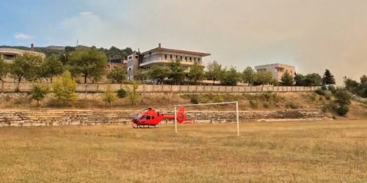 Helikopterët e Emergjencave Civile janë pozicionuar në stadiumin e Gramshit.