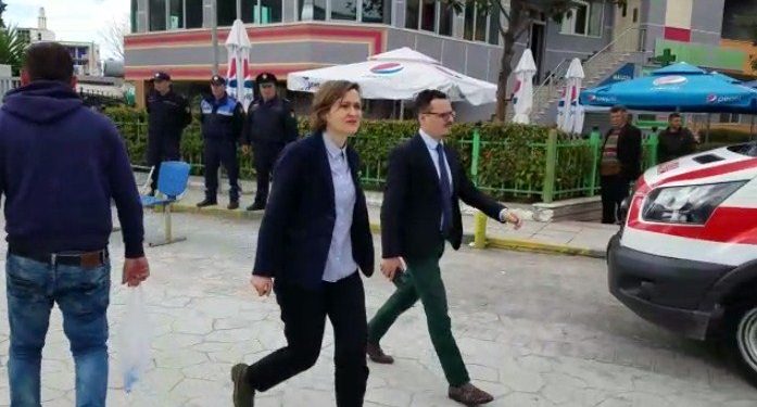 Ministrja e Arsimit Besa Shahini ka mbërritur në gjimnazin e Fierit, Janaq Kilica ku u helmuan mbi 40 nxënës si pasojë e sprajit piper të hedhur për herë të dytë brenda 10 ditësh nga një nxënës problematik i kësaj shkolle.