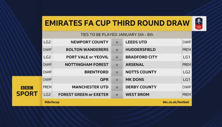 Kampioni aktual, Manchester United do të përballet me Derby County, Notts Forest me Arsenalin kurse Chelsea do të ketë punë me Norëich.