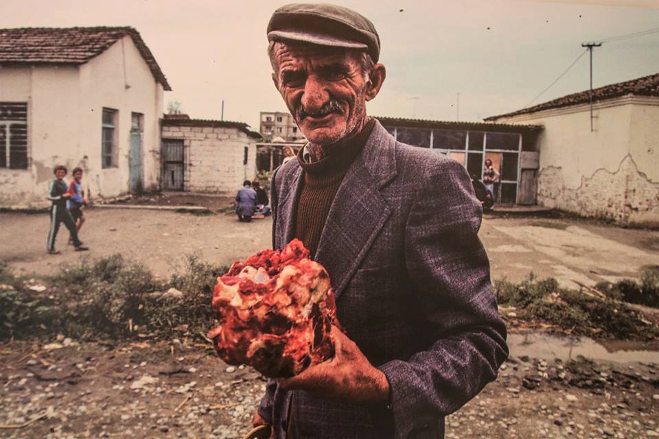 Simbolet e fundit të komunizmit shkatërrohen një nga një. Një tjetër foto na çon më 1981 Durrës. Kampi i pionerëve në plazhin e Durrësit, për moshat 8 – 14 vjeç. Kampi është i rrethuar me bunkerë. Një tjetër foto tronditëse është ajo ku një burrë mban në duar një copë mishi.