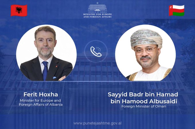 Ministri për Evropën dhe Punët e Jashtme, Ferit Hoxha, ka zhvilluar një bisedë me Ministrin e Jashtëm të Omanit, Badr bin Hamad Al Busaidi, ku u trajtuan zhvillimet e fundit në Lindjen e Mesme dhe rreziqet që sjell përshkallëzimi i mëtejshëm i situatës.